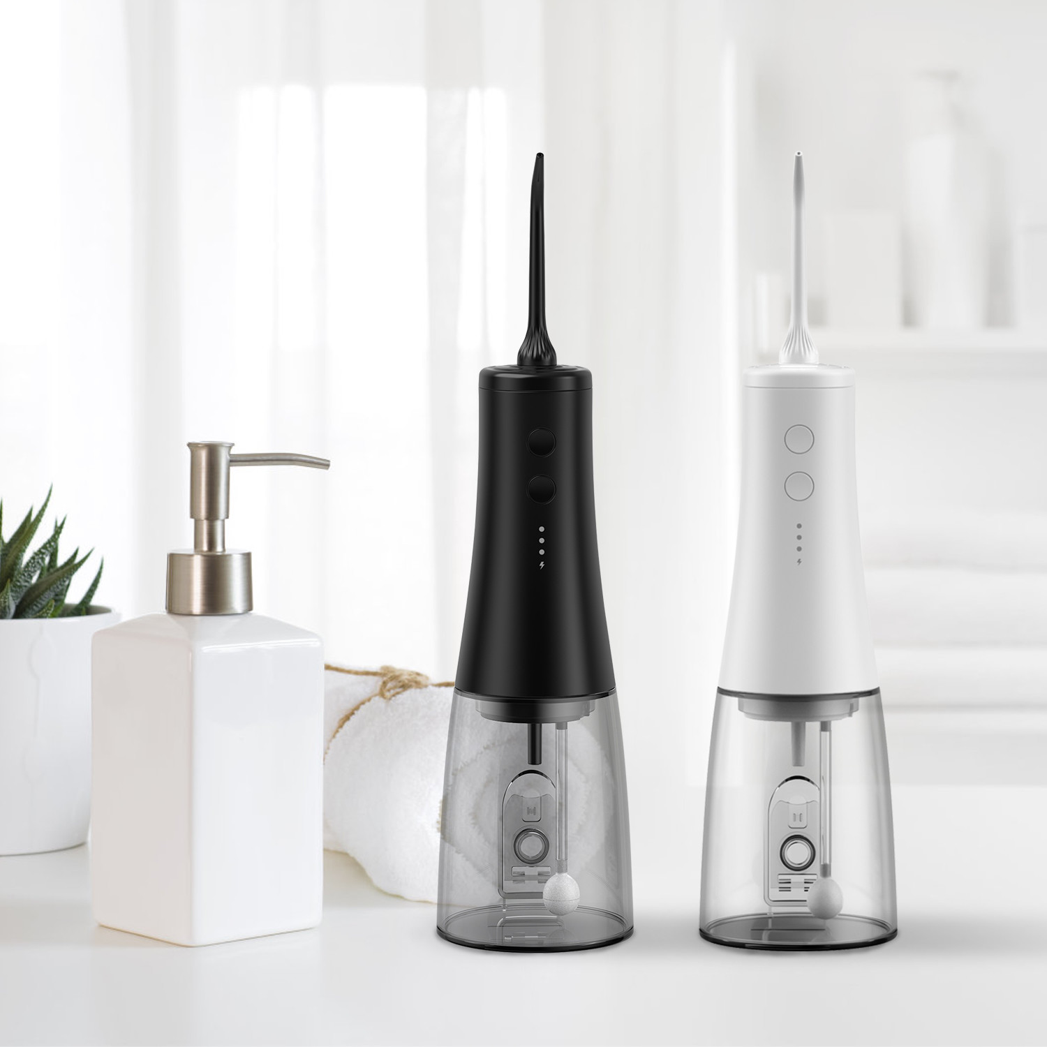 - Η δεξαμενή νερού 350ml αποθηκεύει άφθονο νερό για έως και 90 δευτερόλεπτα συνεχούς χρήσης. Αρκετός χρόνος για να καθαρίσετε τα δόντια. Η αφαιρούμενη δεξαμενή νερού είναι εύκολο να καθαριστεί.Το υδατικό οδοντικό νήμα έχει εσωτερικό υδατοασφαλές σχέδιο, ορολογικό άρδευση αποτρέψει την διαρροή νερού αξιόπιστα, μπορεί να χρησιμοποιηθεί για το ντους στο μπάνιο και είναι πλέσιμο για καθαρισμό (Προσευχθείτε ότι το καπάκι της βάσης από καουτσούκ είναι σφιχτά κλειστό)